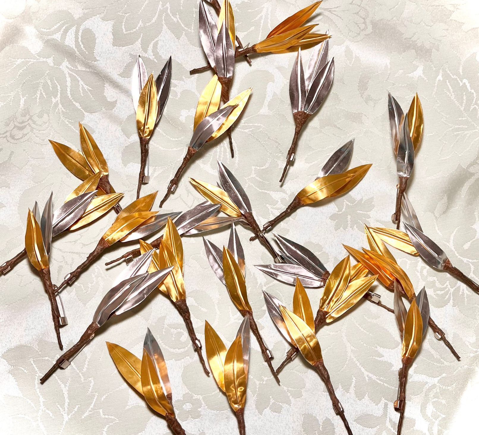 Añade un toque de elegancia natural y sofisticación a tu traje o vestido con nuestro alfiler de solapa artesanal en forma de hojas de olivo. Un trabajo de orfebrería hecho a mano por artesanos expertos. Este alfiler simboliza paz, sabiduría y victoria, características asociadas desde la antigüedad con el OLIVO.